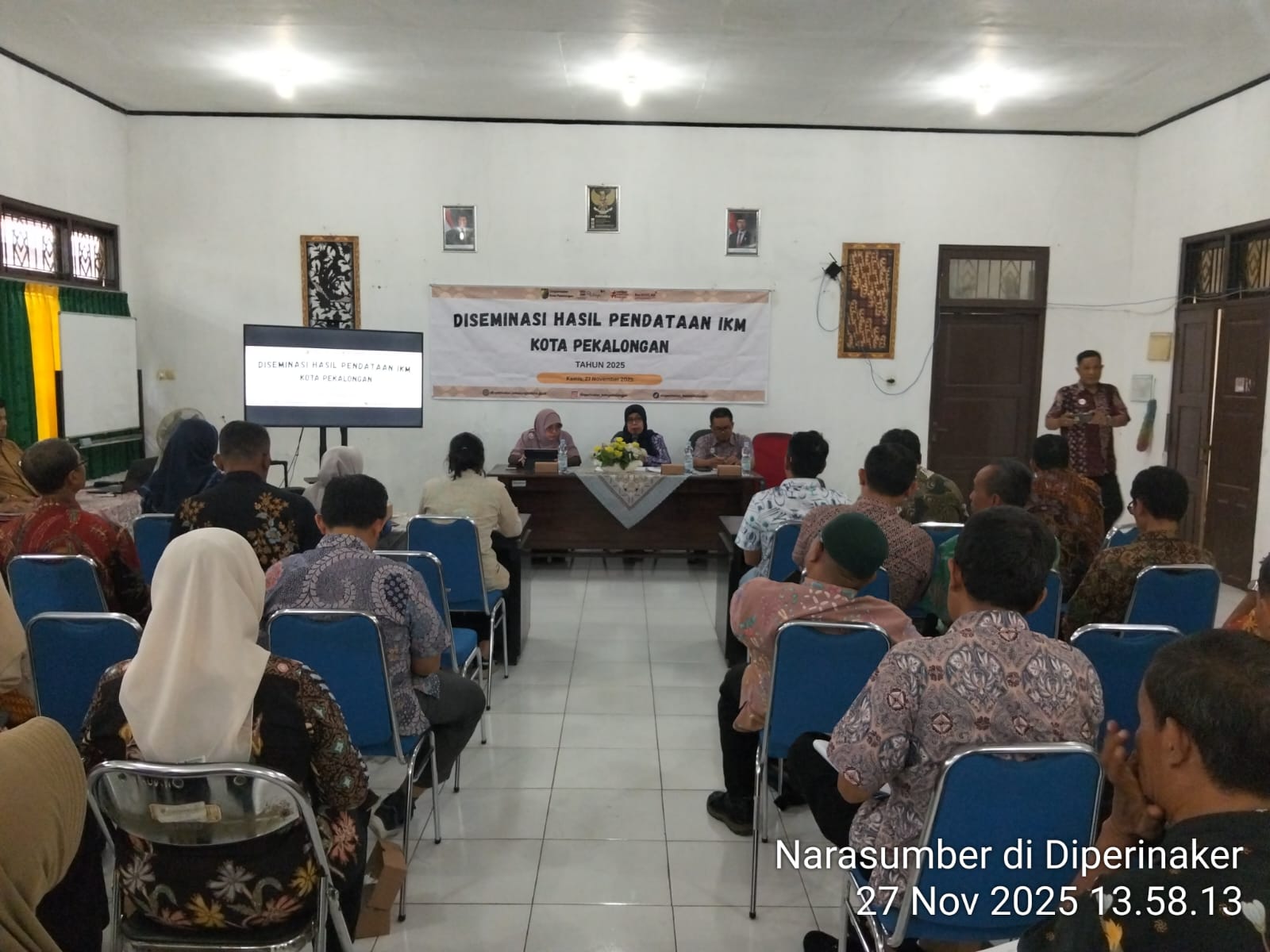 Hadir sebagai narasumber yaitu perwakilan dari Badan Pusat Statistik (BPS) Kota Pekalongan, didampingi oleh bidang Perindustrian Dinperinaker. Secara keseluruhan, kegiatan berjalan dengan lancar.