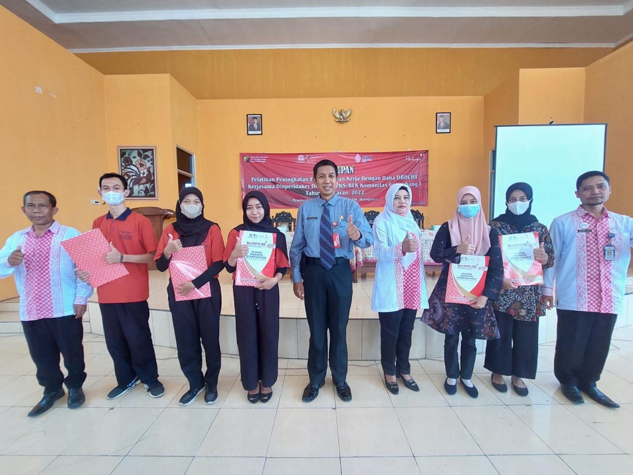 KETENAGAKERJAAN Pelatihan Peningkatan Keterampilan Kerja dengan Dana DBHCHT Kerjasama Dinperinaker Kota Pekalongan 16 Agustus 2022 [16:12:34]