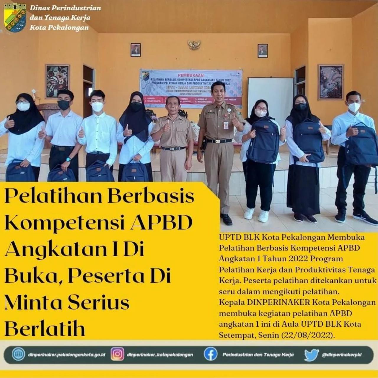 KETENAGAKERJAAN Pelatihan Berbasis Kompetensi APBD Angkatan I Dibuka, Peserta Diminta Serius Berlatih 22 Agustus 2022 [10:37:12]