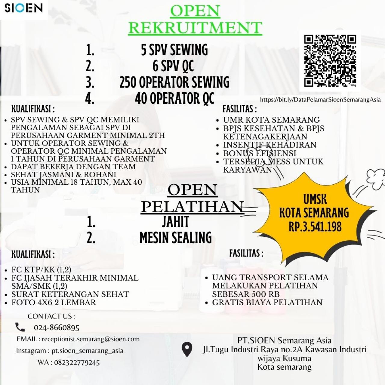 INFO LOKER PT. SIOEN SEMARANG ASIA